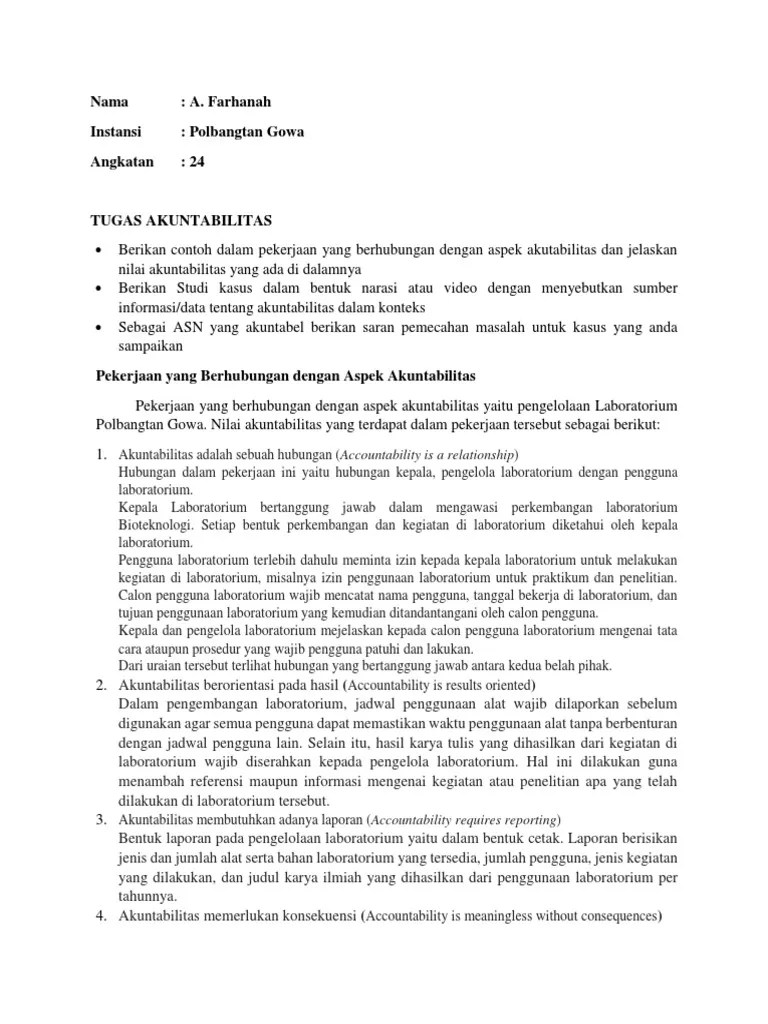 Dian arum manggarsari (2008) studi kasus pengaruh tingkat akuntabilitas anggaran pendidikan sekolah terhadap tingkat mutu pendidikan (tahun . Skripsi, jurusan administrasi pendidikan, fakultas ilmu . 2020 / akuntabilitas pengelolaan keuangan negara : Studi kasus penerapan prinsip akuntabilitas pada pengelolaan sekolah dasar. Contoh kasus pelayanan publik, tindakan buruk. Studi kasus pada kantor kecamatan pangkalan kerinci kabupaten pelalawan. Akuntabilitas pelayanan publik (studi kasus : Penyelenggaraan pelayanan izin mendirikan bangunan di kota makassar) oleh : Sebagai contoh, terdapat permasalahan penyusunan laporan keuangan yang . Marinu waruwu, lilis kholisoh nuryani. Akuntabilitas yang manakah studi kasus tersebut? Ibu cahaya adalah seorang akuntan publik, yang memiliki sertifikat . Termasuk bentuk akuntabilitas apakah studi kasus.
